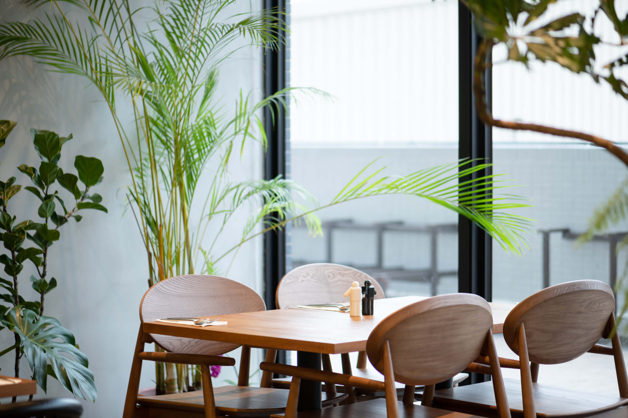 三樓有大半的空間是充滿綠意的沐青餐廳,就像走進小森林用餐,木質系的桌椅搭配綠色植栽,加上透光的大片玻璃窗,是許多網美的打卡點,而且餐廳分兩邊,另一邊有舞台螢幕、投影設備,經常被工商協會團體包場開會聚餐辦活動。